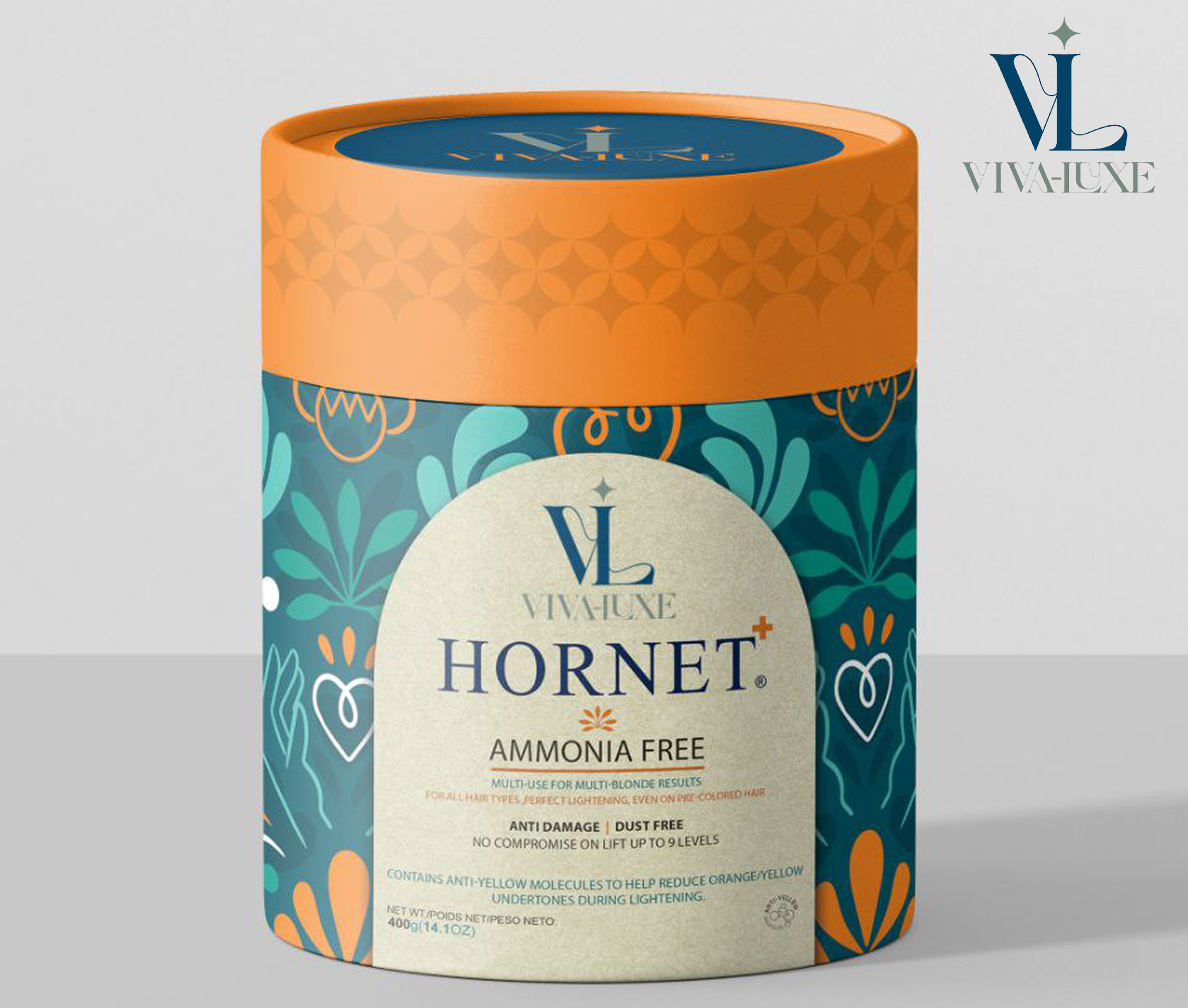 VIVA-LUXE Lightening Powder with Bond Builder Technology Bond builders have now become a standard additive in many blonding services. VIVA-LUXE introduces an innovative lightening powder with Bond Builder Technology included. Hornet offers easy preparation and delivers up to 97 percent less breakage without compromising lift. This ammonia-free bleaching powder is suitable for all professional lightening techniques. When mixed with Coxidant X-Cromatic, it forms a smooth and homogeneous cream that does not swell or drip, ensuring effortless application. This product is ideal for bleaching, highlights, and color stripping. VIVA-LUXE bleaching powder is completely safe and can remain on the hair for an extended period without damage. Preparation In a non-metallic bowl, mix the bleach powder with the oxidant in small amounts. The recommended ratio is one spoonful of powder, approximately 25 grams, mixed with 50 milliliters of cream oxidant at 3, 6, 9, or 12 percent strength. Instructions Process for up to 50 minutes, depending on the desired level of lightness and the porosity of the hair. Heat accelerates the lightening process. Check the hair frequently and once the desired lift is achieved, rinse thoroughly and shampoo. Caution • Perform an allergy test before use. • Avoid contact with the eyes. If contact occurs, rinse immediately with water. • Do not use on eyelashes or eyebrows. • Wear gloves during application. • Keep out of reach of children. • Do not exceed the recommended processing time. • Avoid contact with metal. For professional use only
